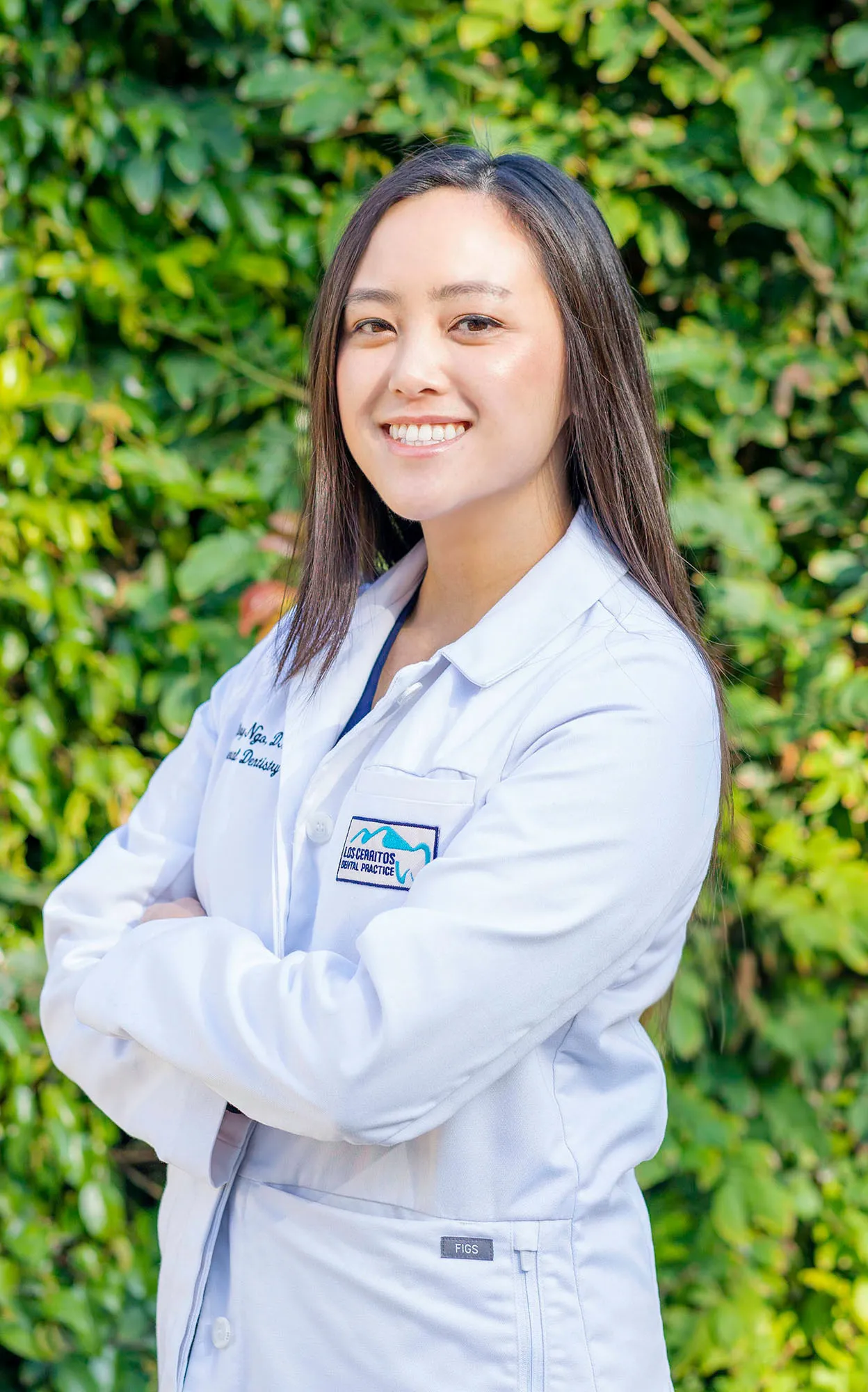 Dr. Ngo was born and raised in Southern California but has lived away from home for most of her life. She attended the University of California, Berkeley and earned her B.A. in Integrative Biology. After these four years, she embarked on a new journey across the United States to her new destination, Boston, for dental school. She received her Doctor of Dental Medicine degree from Tufts University, School of Dental Medicine. With additional training in the Adult Education in General Dentistry residency, she specialized in comprehensive dental care covering all aspects of dentistry and hopes to continue to promote exceptional oral health. After living away from home for a while, she is very happy that she moved back to Cerritos, California where she grew up. She attended Gonsalves Elementary, Carmenita Middle School, and then Cerritos high school so let her know if you attend or attended any of these schools!